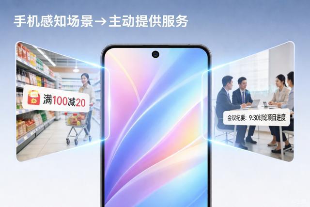 举个很实在的例子:未来手机看到你在逛超市,就能推送优惠信息;看到你在开会,就能自动开启会议